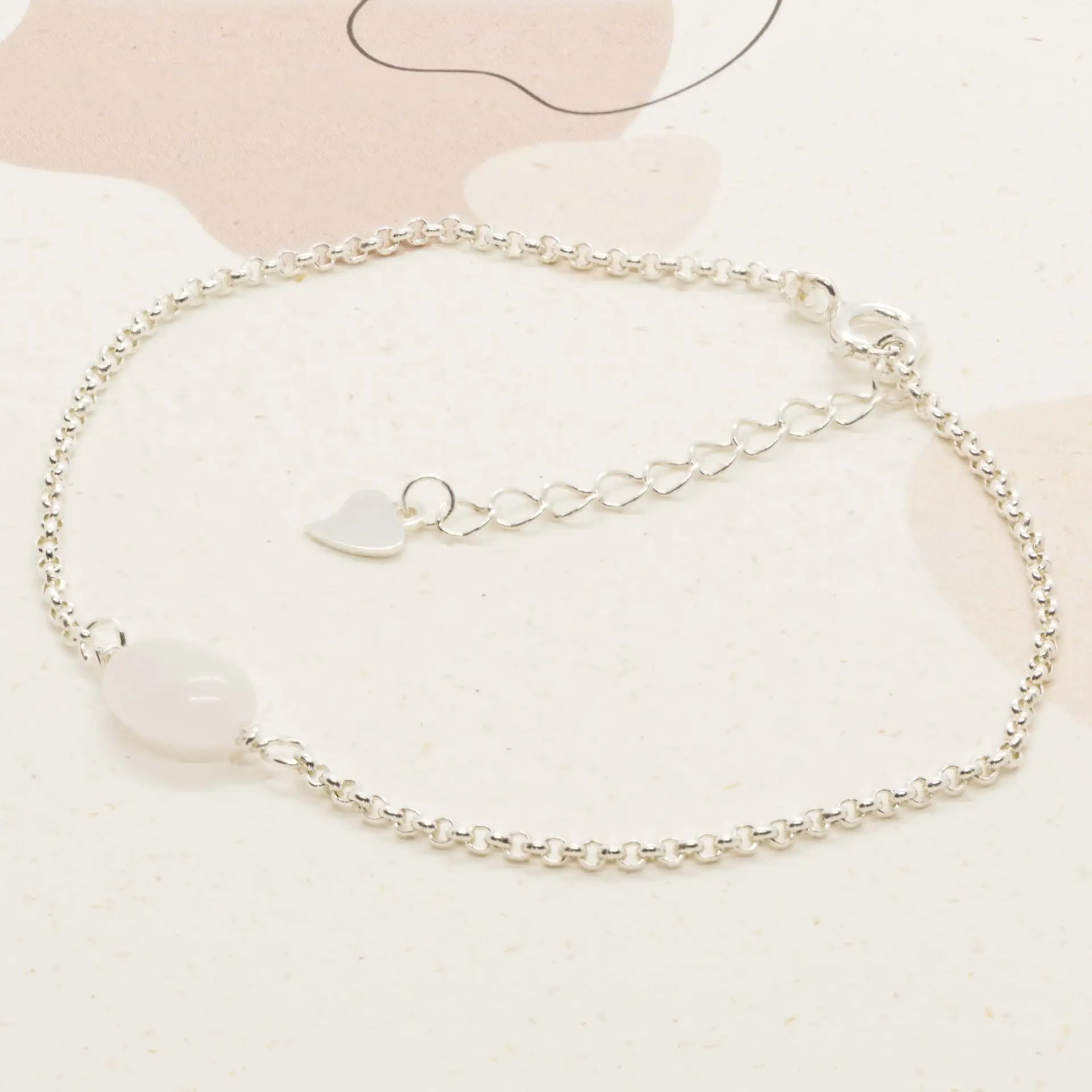 Rozenkwarts staat bekend als de steen van liefde, mildheid en innerlijke harmonie. In dit armbandje komt die betekenis tot leven – ingetogen, teder en stijlvol. Het hartvormige verlengstukje voegt een speels detail toe, als een stil accent van zachtheid.